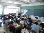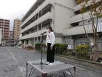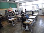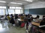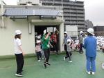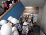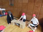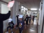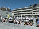 2校時は大地震が起きて大津波警報が発令されたという想定で避難訓練を行いました。緊急地震速報で素早く机の下に潜り、避難開始の放送で屋上へ避難します。普段は校庭避難ですが、大津波を想定し今日は屋上へ避難します。ヘルメットをかぶり、迅速に避難できました。