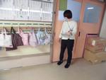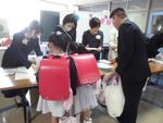 1年生はランドセルをロッカーにしまって自分の席に着席。座り心地を確かめています。6年生や地域協働本部のお母さん方が初日からお手伝いに来てくれました。