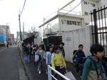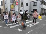 今日から新しい学年・クラスのスタートです。登校班で6年生が先頭に立ち1年生を気遣いながら登校します。「うちの班は1年生が6人もいるんだよ」と嬉しそうに報告してくれる班長さん。旗当番の保護者や学援隊の方に見守られて整然と歩きます。