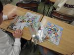 そして休み時間は図書館が人気です。大勢の子が本を読みに来ています。教室ではゲームをしたり、日本語かるたをしたり、委員会活動でうずらのお世話をする5年生、6年生もいます。みなさんけがのないように過ごしましょう。