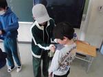 1年生は心臓検診です。予防医学協会からスタッフが来校し、心電図をとって健康チェックです。健康や安全に関する活動も大切な教育です。