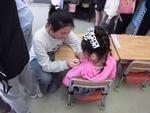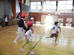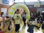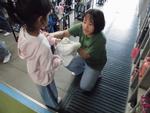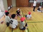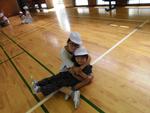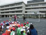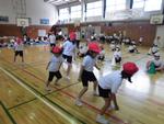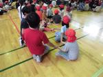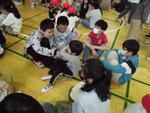終わったあとは・・・じゃんけん列車で遊びます!身をかがめて1年生の背丈に合わせて遊ぶ6年生です。