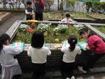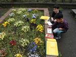 校庭では春探しの2年生がお花や生き物の観察に夢中です。スケッチが次々増えていきます。
