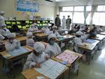 1年生の教室では公園で出会ってお話を聞かせていただいた町内会長さんに御礼のメッセージカードが渡されていました。