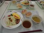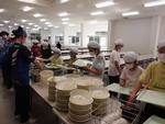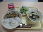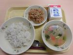 そして給食がスタートです。1年生もしっかり身支度して準備OK。今日は豚汁とツナそぼろ、麦ごはん、牛乳の献立です。残さず食べましょう。
