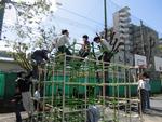 創立120周年横断幕が正門のプールフェンスに飾られました。
