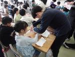 今日と明日の2日間、体力や運動能力を測定する新体力テストを実施します。実施種目は屋外でソフトボール投げ、立幅跳び、握力、体育館で長座体前屈、反復横跳び、上体起こしです。50メートル走とシャトルランは別日に測定します。ペア学年が一緒に動いての測定です。6年生と一緒に回った1年生はとても楽しそうでした。ボランティア参加の保護者、育友会、地域協働本部の皆様ありがとうございました。
