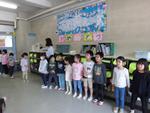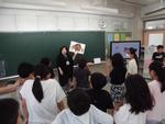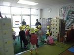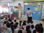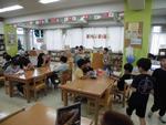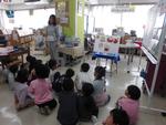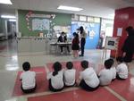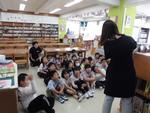 みなみマーノ保育園年長さんが来校し図書館に寄るついでに新1年生の様子も見学しました。年長さんになったばかりなので「来年は小学生」という気持ちには少し早いですが、それでも去年まで一緒に生活していた1年生を見つけてお互いに手を振り合っていました。また保育士さんと抱き合って再開を喜ぶ1年生もいます。教室の後ろから見られている1年生は、背中をピンと伸ばして国語のお勉強をします。年長さんたちにいいところを見せてくれました。教室では緊張していた園児さんも図書室ではリラックス。司書のパネルシアターでだるまさんのお話を聞いて笑顔で帰りました。また来てくださいね。