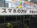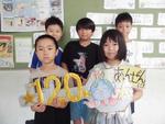 120周年おめでとう横断幕の下に交通安全標語横断幕が張られました。「命より スマホの方が 大事なの?」は去年の3年生(現4年生)の子どもたちが考えた標語です。これとは別にのぼりもできました。「ぜったいに ルールをまもって じこは0」「ヘルメット 命を守る たから物」「あぶないよ スマホばかり 見てる君」社会科や総合的な学習で学んだことを形にして発信しました。スクールゾーン対策協議会、学校運営協議会からも自転車の乗り方や登下校の安全について提言をいただいていますので、引き続き安全指導には力をいれていきます。