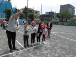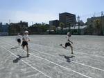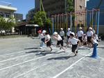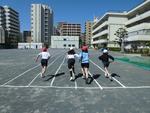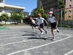 爽やかな青空の下で50メートル走のタイムを計ったりハードルの学習をしたり、休み時間にはハーハー言いながら鬼ごっこをしたりと思い切り体を動かすMYキッズです。今年も体力アップ頑張りましょう。