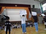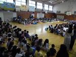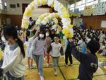 今朝は全校が体育館に集まって1年生を迎える会を開きました。6年生が教室に迎えに行き、アーチをくぐって入場します。歓迎の言葉のあとは南吉田小学校クイズです。「1年に1回しか出ない給食は何?」という問題には在校生が盛り上がっています。1年生からのメッセージがあり、全員合唱で声をそろえて「いつだって」を歌います。入学して2週間、1年生も学校にすっかり慣れて元気に登校しています。企画運営は昨年度の児童運営委員の6年生です。温かい会を計画してくれてありがとうございました。