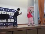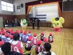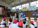 1年生が神奈川県警察本部防犯・交通安全教室に参加しました。防犯・交通安全教室の後には元サッカー日本代表で川崎フロンターレ特命大使の中西哲生氏がサッカー教室をしてくださるとのことで、スポンサー企業の明治安田生命、神奈川中央交通のマスコットも来てくれました。ペンタンとカナミンの登場に「かわい~」と盛り上がる子どもたち。県警本部の皆さんの交通安全や防犯に関するお話しをきき、寸劇を見て「知らない人についていかない」を確認します。寸劇には県警本部のマスコットぴょんこも登場し、着ぐるみ3体で楽しく交通安全や防犯について学びました。