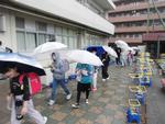 今朝は雨の中での登校です。傘をさして、長靴を履いて、カッパの子もいます。風も強かったので「こんなになっちゃった」と壊れた傘を持ってくる子も。雨の日の昇降口は混雑します。傘をたたんで(たためない子もいます)長靴脱いで(座らないと転ぶ子がいます)カッパを脱いで(自分では脱げない子がいます。)おっと、濡れたカッパはビニールに入れないと校舎が濡れちゃうよ!そうこうしていると「うわばき忘れた」と訴えてくる子も。という具合に低学年の昇降口は職員総出で交通整理です・・・。こうして雨の日の学校は始まります。保護者の皆様付き添いありがとうございます。