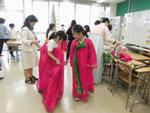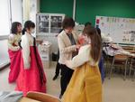 韓国語教室や韓国文化紹介でお世話になっている、神奈川韓国総合教育院から民族衣装の寄贈を受けました。去年韓国語教室に参加していた児童に声をかけたところ大勢来てくれて、ファッションショーの始まりです。色鮮やかな衣装に身を包んで記念写真に収まります。今年も韓国語教室を開講するので参加お待ちしています。K-POPの講座もあるかもしれません。お楽しみに。神奈川韓国総合教育院の皆様ありがとうございます。