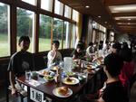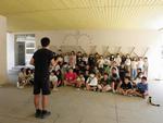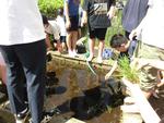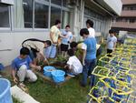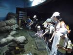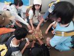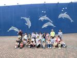 シーパラダイスではクラス写真を撮り、グループ活動のスタートです。クマやアザラシに見とれ、大水槽前では「わ~!」イルカを下から眺めて「あ、うんちした」と大笑い。タッチプールでヒトデをさわったり、陸がめをさわったりして楽しみます。アジ釣り体験では「キャーキャー」言いながらアジを釣り上げ、キッチンでフライにしてもらいおいしくいただきます。イルカのショーで盛り上がりお弁当を食べて宿泊場所のYMCAエコビレッジへ。