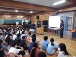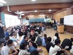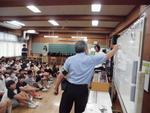 来日して半年程度の子どもたちの保護者のみなさんに集まっていただき、学校・生活ガイダンスを行いました。毎年区役所や消防署、みなみラウンジと共同で開催しています。学校からは日本語学習の教材や宿題のこと、夏休みの家庭学習のことなどを国際教室担当が話します。区役所の防災担当からは、大きな地震が起きた時の身を守る行動や避難所などの話がありました。またみなみラウンジからは、多言語での情報発信サイトや相談窓口の話、日本語教室の話などがありました。参加していただいた保護者の皆様ありがとうございました。