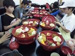 こちらは七夕の準備と七夕にちなんだ給食献立です。すましそうめんが人気でした。