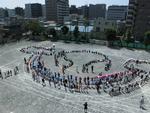 雨で延期されていた120周年記念航空写真の撮影を行いました。ドローンによる撮影で時代の変化を感じます。とても暑い中でしたので、霧吹きで首に水を吹きかけたり、ハンカチを濡らして首にまいたり、帽子を水につけたりして熱中症対策をしながらの撮影となりました。サポートいただいた育友会実行委員会、広報委員会、地域協働本部の皆様ありがとうございました。どんな図柄になるのか楽しみです。写真の販売は後日案内いたします。