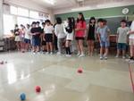 外スポーツクラブはピロティで縄跳びを、陸上クラブは教室でボッチャに初挑戦。