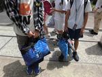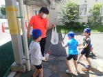 大きな荷物を持って下校する子どもたち。関東地方も梅雨明けし夏空が広がります。明日から39日間の休みになります。生活リズムを崩さず、健康安全に留意して過ごしてください。8月27日に会いましょう!