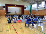 校内スピーチコンテストでは、6名の代表のスピーチを聴きました。全員が真剣に聴いていました。