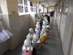 本校の西校舎と南校舎は土砂災害警戒区域にしていされているため、全校で東校舎に避難を行いました。児童の皆さんは落ち着いて避難をすることができました。職員室(本部)では、避難の状況を適宜確認し、人数確認を行いました。最後は校長先生のお話を放送で聞き、訓練の意味や目的をしっかりと確認しました。