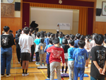 全校児童が体育館に集まり、期分式が行われました。4年生と6年生が代表してがんばったこと、楽しかったことを発表しました。この半年間、子どもたちは新しいことに挑戦し、クラスや学年を越えて交流を深めながら、たくさんの学びと経験を得ることができました。校長先生からは、各学年ごとにこれまでのがんばりとこれからに向けてのお話があり、子どもたちは静かに耳を傾けていました。