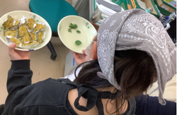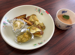 出来上がった料理はとてもおいしく、みんな笑顔で「おいしい!」と言いながら食べていました。自分たちで育てたサツマイモの味は格別だったようです。