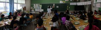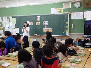 3の1は「いただきます」をした後の10分間、集中して静かに食べる時間を設けております。そのときに栄養教諭に姿を変える大豆の指導をしていただきました。指導が終わったあと、子どもたちは一斉に食缶めざして何人もおかわりをしに行きました。
