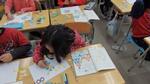 ここでは、二等辺三角形と正三角形の定義を理解することと、コンパスを使って それらを描くこと。また、「角」の意味と上記の三角形の関連の学習をします。 単元最後の学習で、二等辺三角形と正三角形のしきつめをしました。これは、 図形の感覚を養うとともに、模様の美しさや平面の広がりに子どもたちに気づかせる ことがめあてになります。 子どもたちは集中して模様を考え、しきつめをすることができました。あまりにも 集中してやったので、1時間では終わりませんでした。別の日に時間を作り、 完成させて掲示しようと考えています。 現在、少人数で、打ち合わせをしながら学習をすすめています。 その中で、今回三角形をかく際に、コンパスの使い方、ものさしでの 線の引き方が、上手にできない子どもが何人かいたとの報告を受けました。 これからも図形をかく学習があるので、線の引き方や、コンパスの使い方を ご家庭でも練習できるとよいです。![]()