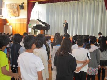 2年生、4年生、6年生が前期の振り返りと後期の目標を発表しました。