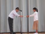 代表の6年生が、校長先生から表彰されました。
