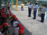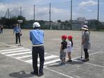 交通安全教室を行い、おまわりさんから道路の歩き方を