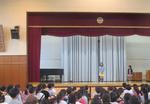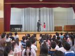 3・5年生の代表児童が水泳学習へのめあてを発表した後、