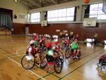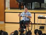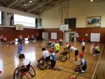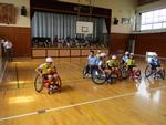 車いすバスケは、5・6年生が体験をし、3・4年生が見学をしました。競技用車いすの操作性を楽しんだり、現役選手の操作技術に歓声をあげたりしていました。