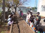 六つ川台小学校の花壇をきれいな花でいっぱいにしようと、1年生と3年生が一緒にチューリップを植えました。