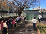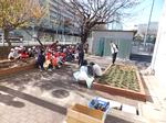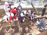 「花壇有志の会」のみなさんから、土の掘り方や球根の植え方を教わりました。みんな真剣に聞き入り、どのように植えれば良いのか確認していました。