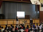 6月2日は開港記念日です。この日はどんな日なのか、昔何があったのか。そんな視点での全校に向けた講話でした。昔の横浜の姿や外国から入ってきた食べものの紹介に、目を輝かせながら聞き入っていました。