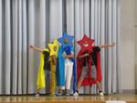 講話の後には今年の六つ川台小学校のスローガン「あいさつ、けじめ、おもいやり、みんなで目ざせキラキラスター」のキャラクター「スターレンジャー」によるなかよしデー遠足のふりかえりがありました。なかよしデーでは、なかよしペアに思いやりをもってかかわることができました☆ いつも児童会スローガンを意識できるよう、ヒーローが台小の心を一つにしてくれています。