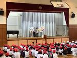 児童が描いた赤白のマスコットも発表され、大きな拍手が巻き起こりました。運動会まであと15日。日々の練習に熱がこもっています。