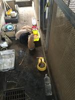 うさぎ小屋には部屋が3つあります。いちばん手前の小屋には、8匹のうち、3匹が静かに暮らしています。