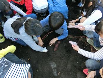 地域の学習ボランティアの川井さんにアドバイスをもらいながら育てたサツマイモ。