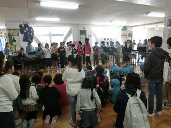 たくさんの児童が集まり、演奏に聴き入っていました。