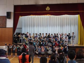 『にじ』の合唱と、鍵盤ハーモニカでの『ミッキーマウスマーチ』が披露されました。