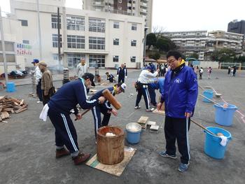 本校の職員も、おもちをこねる手伝いをしましたよ!