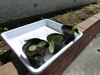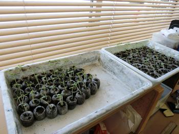 3年生と6年生が学習で使うホウセンカが芽を出しています。