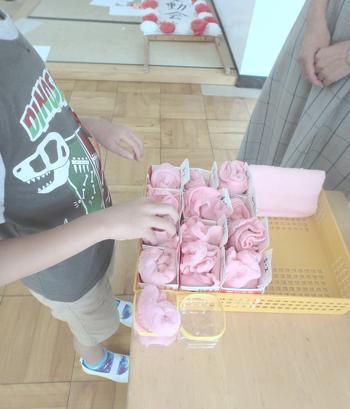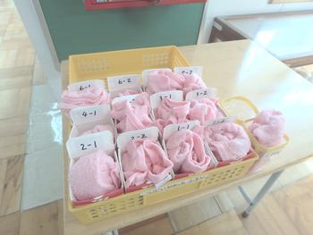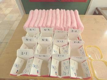 使用後の布巾と交換に、きれいな布巾を渡します。