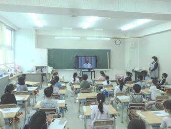 子どもたちは、静かに教室でお話を聞いていました。