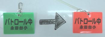永田台小学校PTAでは、今年度から防犯パトロール札(緑)を各家庭に配付し、