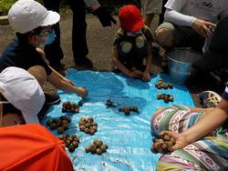 4・5組が畑で育てたじゃが芋を収穫しました。